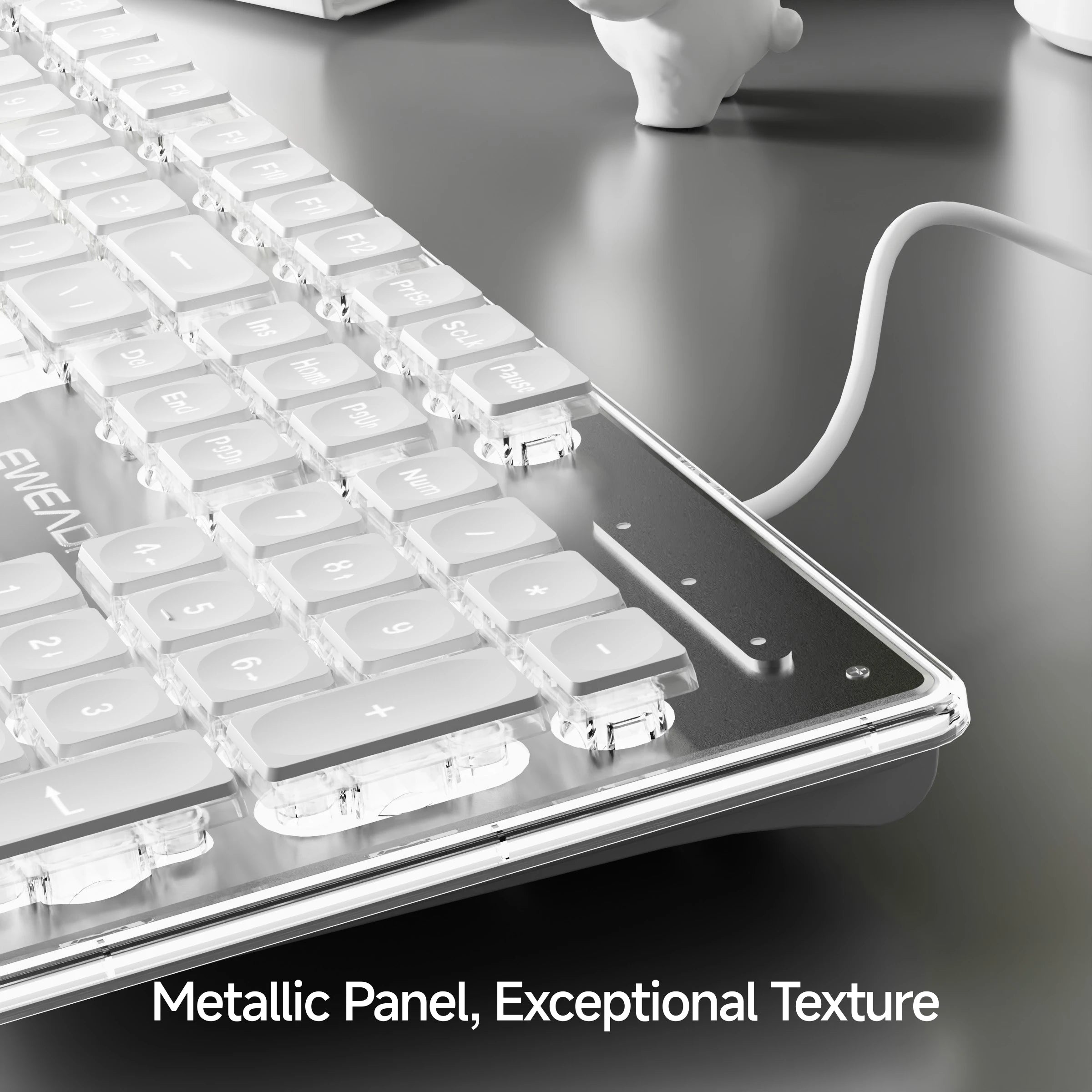 EWEADN wired Office silent Keyboard White backlit,USB full size 104-keycaps All-Metal Panel, ergonomic, gaming Windows/Laptop/PC